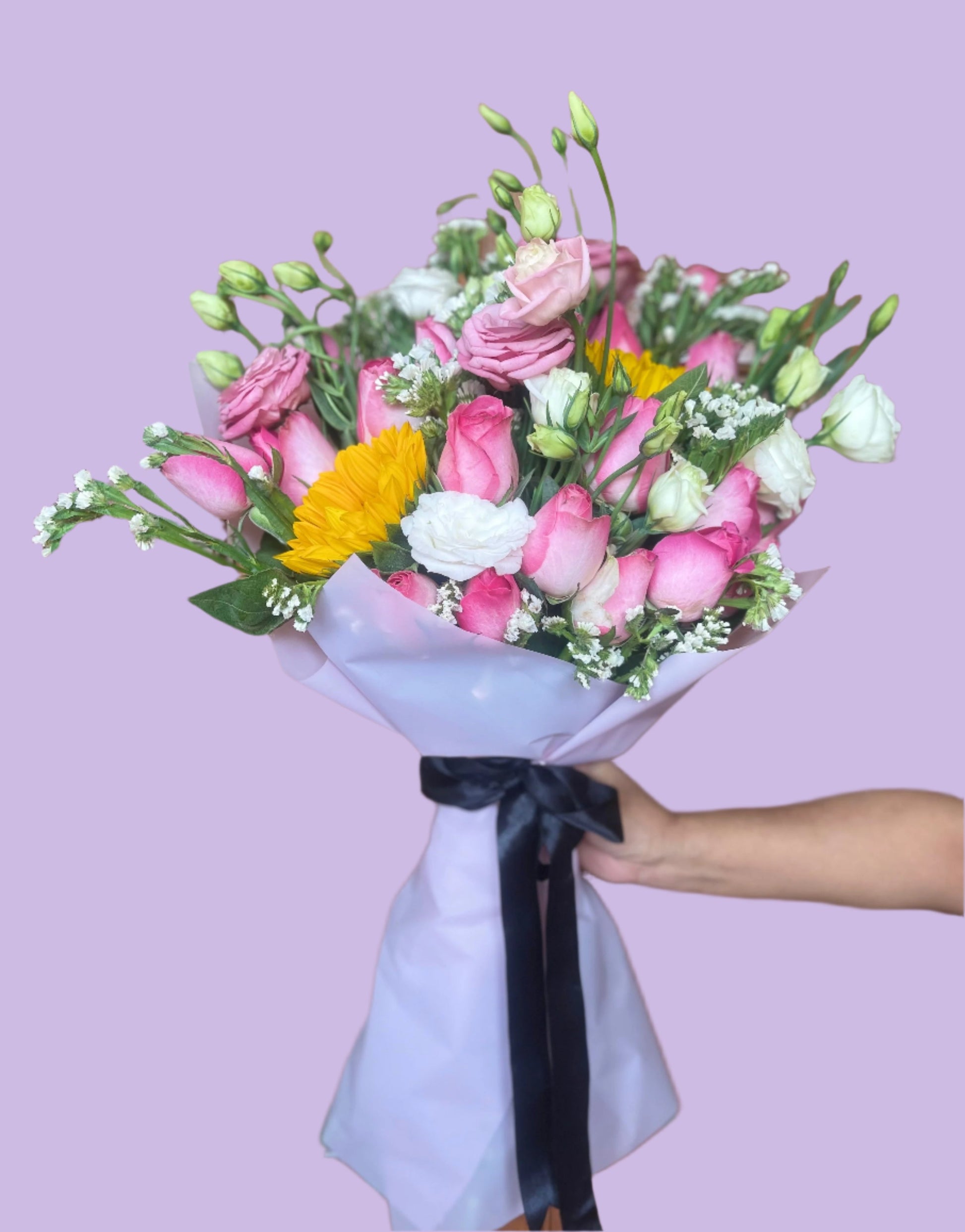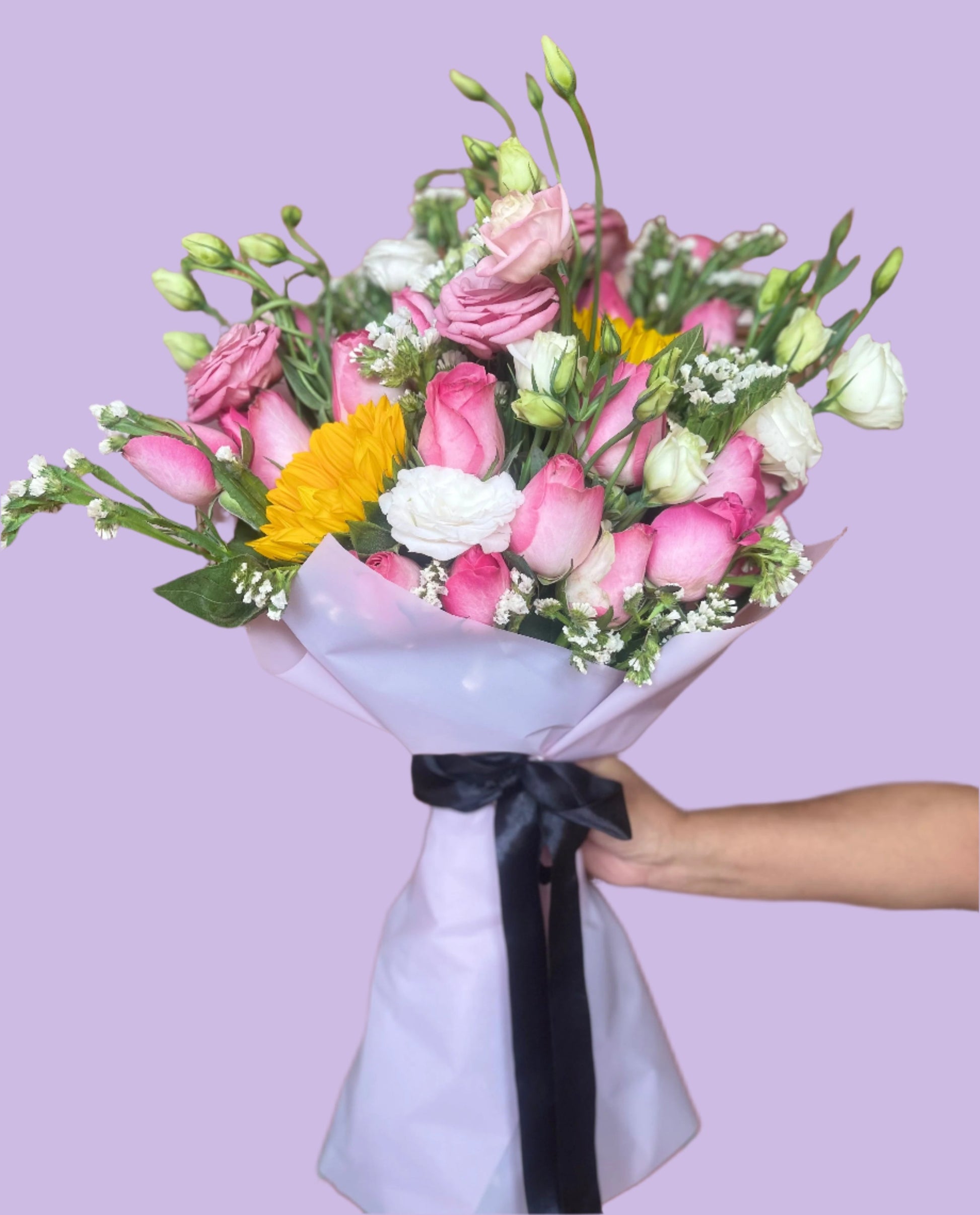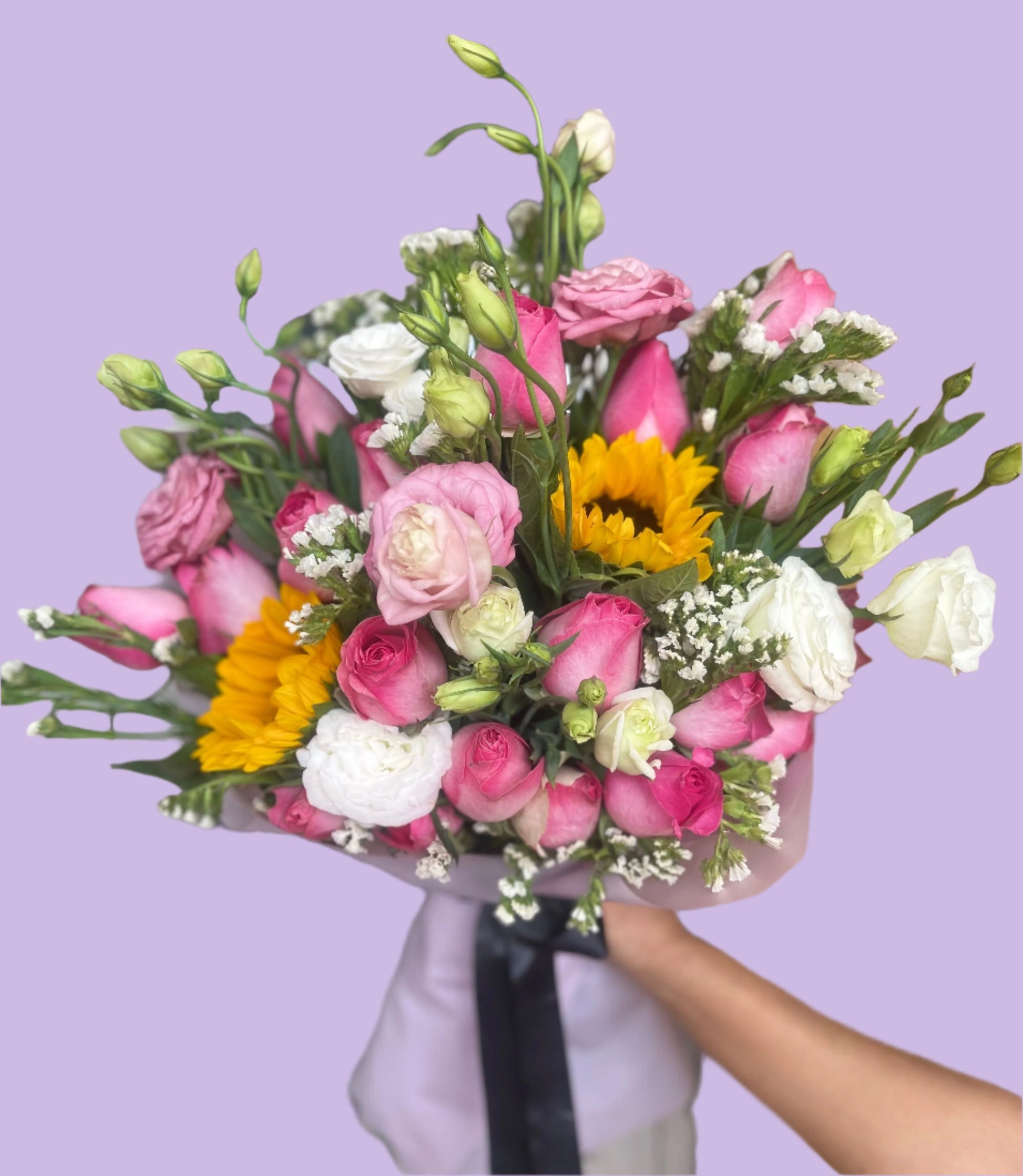 Flower Type: Sunflower, Eustoma, Rose, statice, fillers