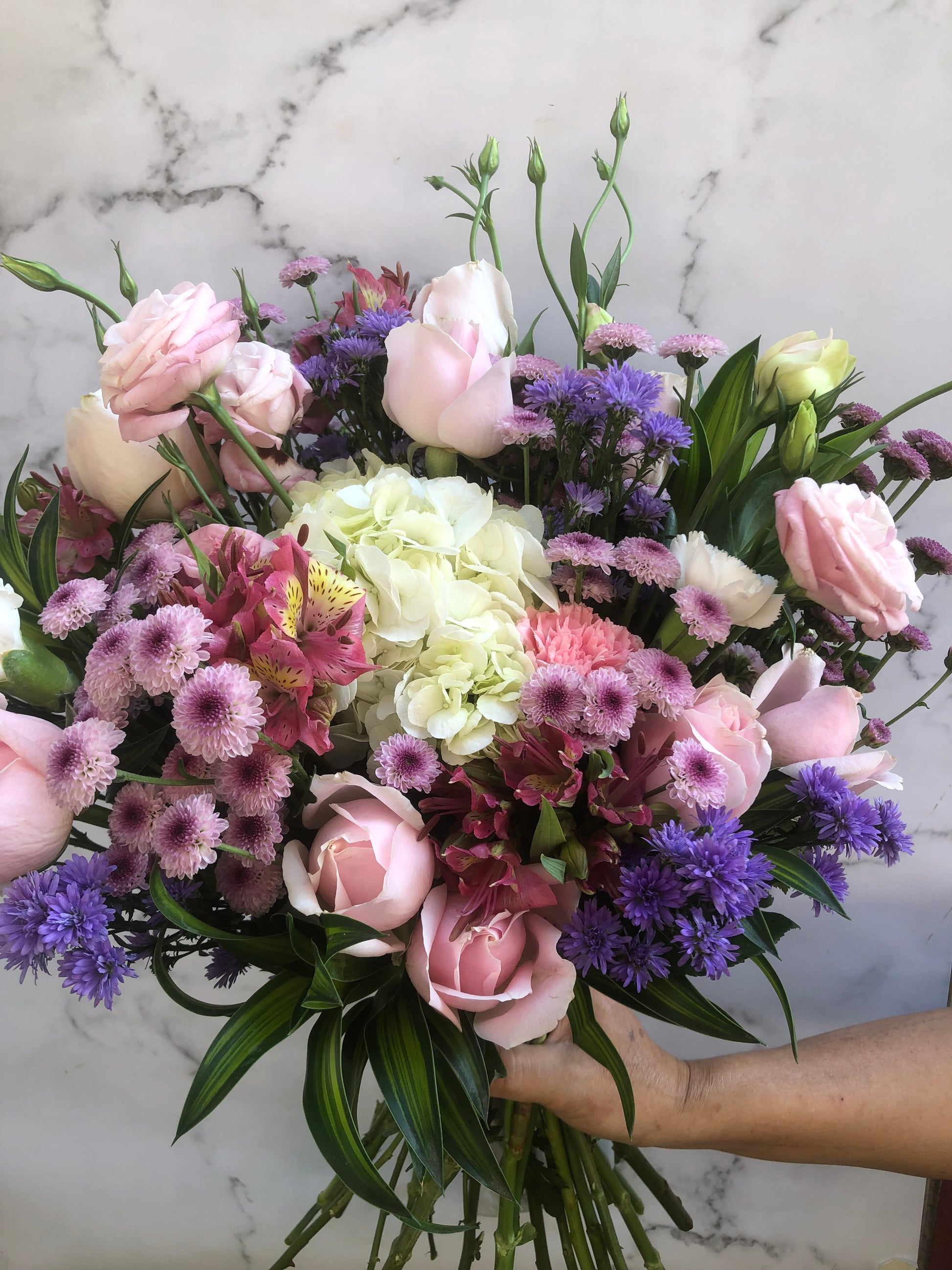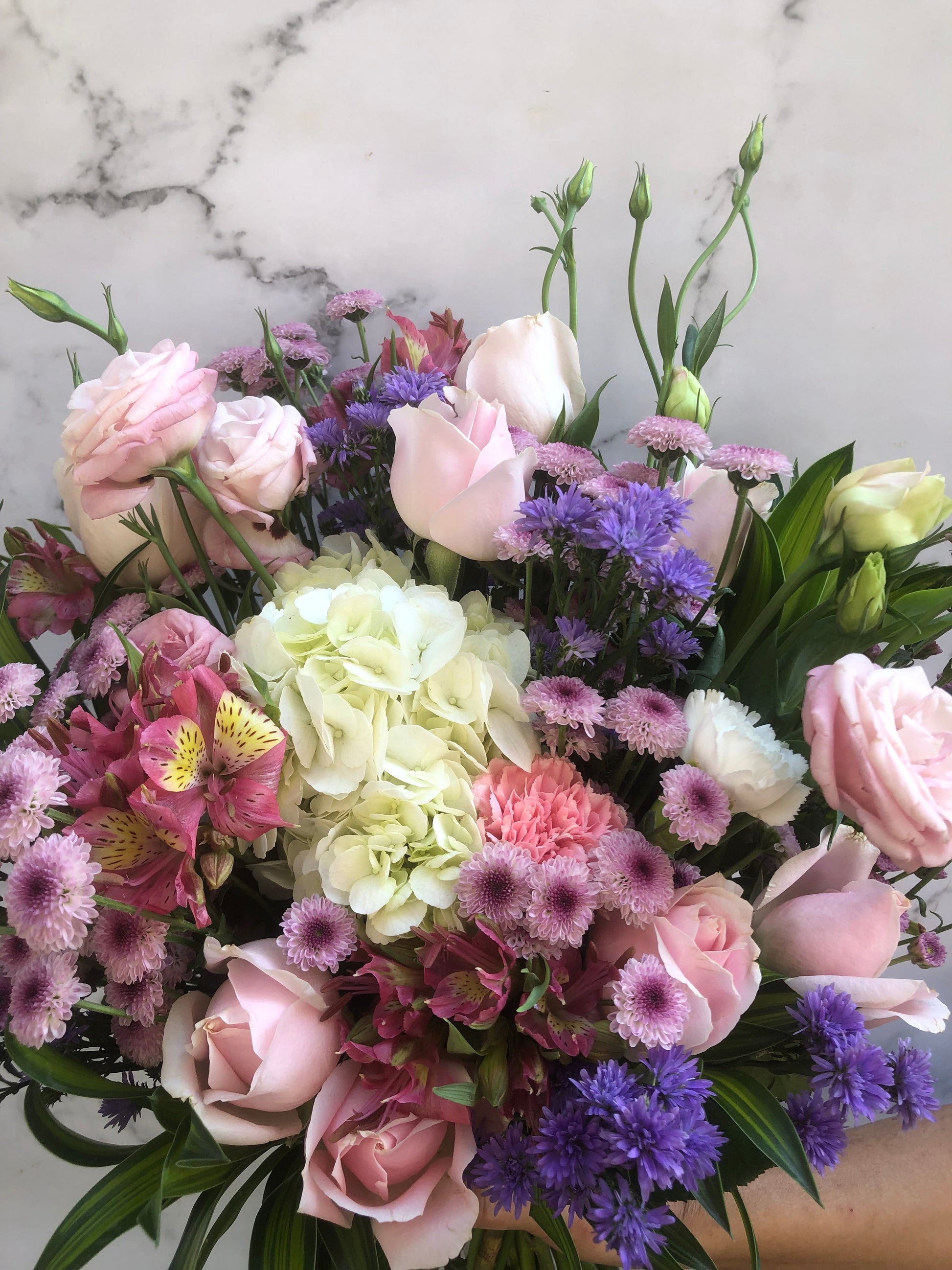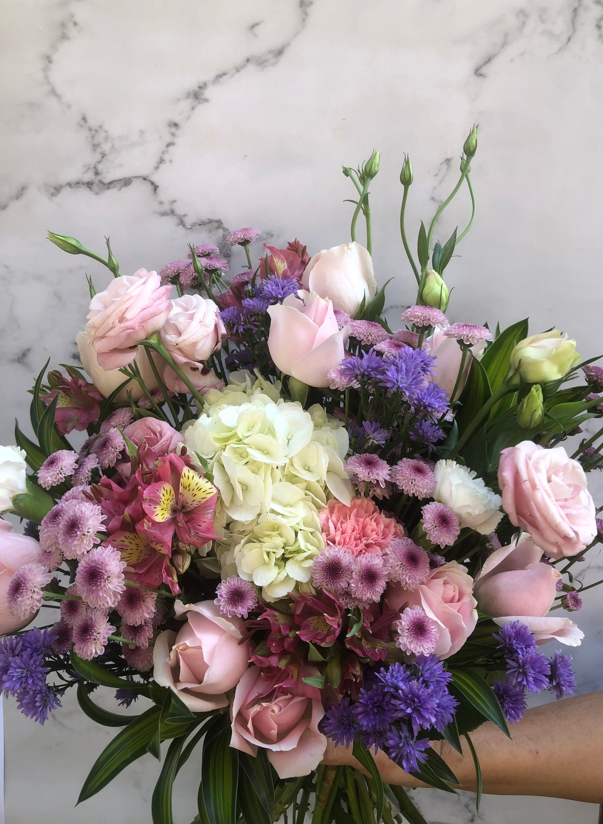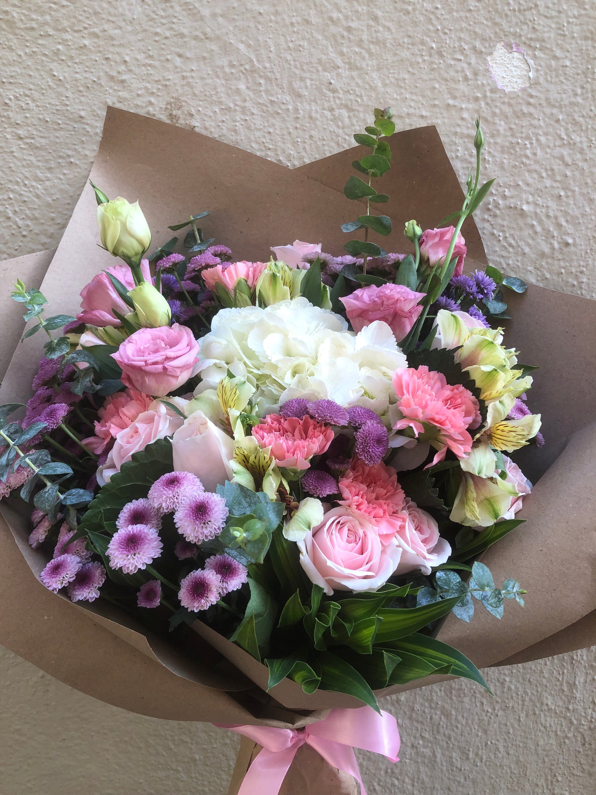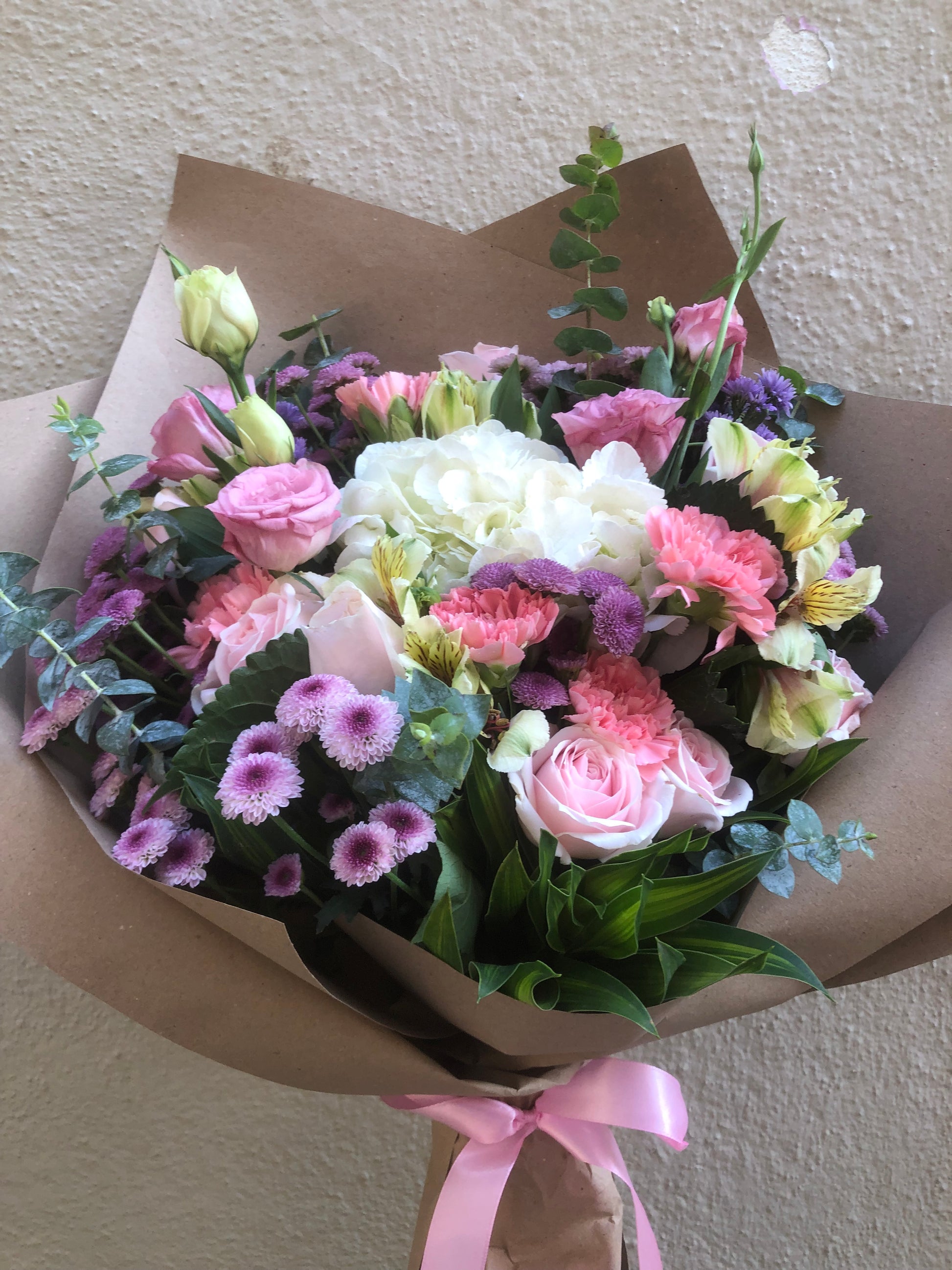 Flower Type: Pink Carnation, Hydrengea,Eustoma,Mums,Alstromerias,Fillers.